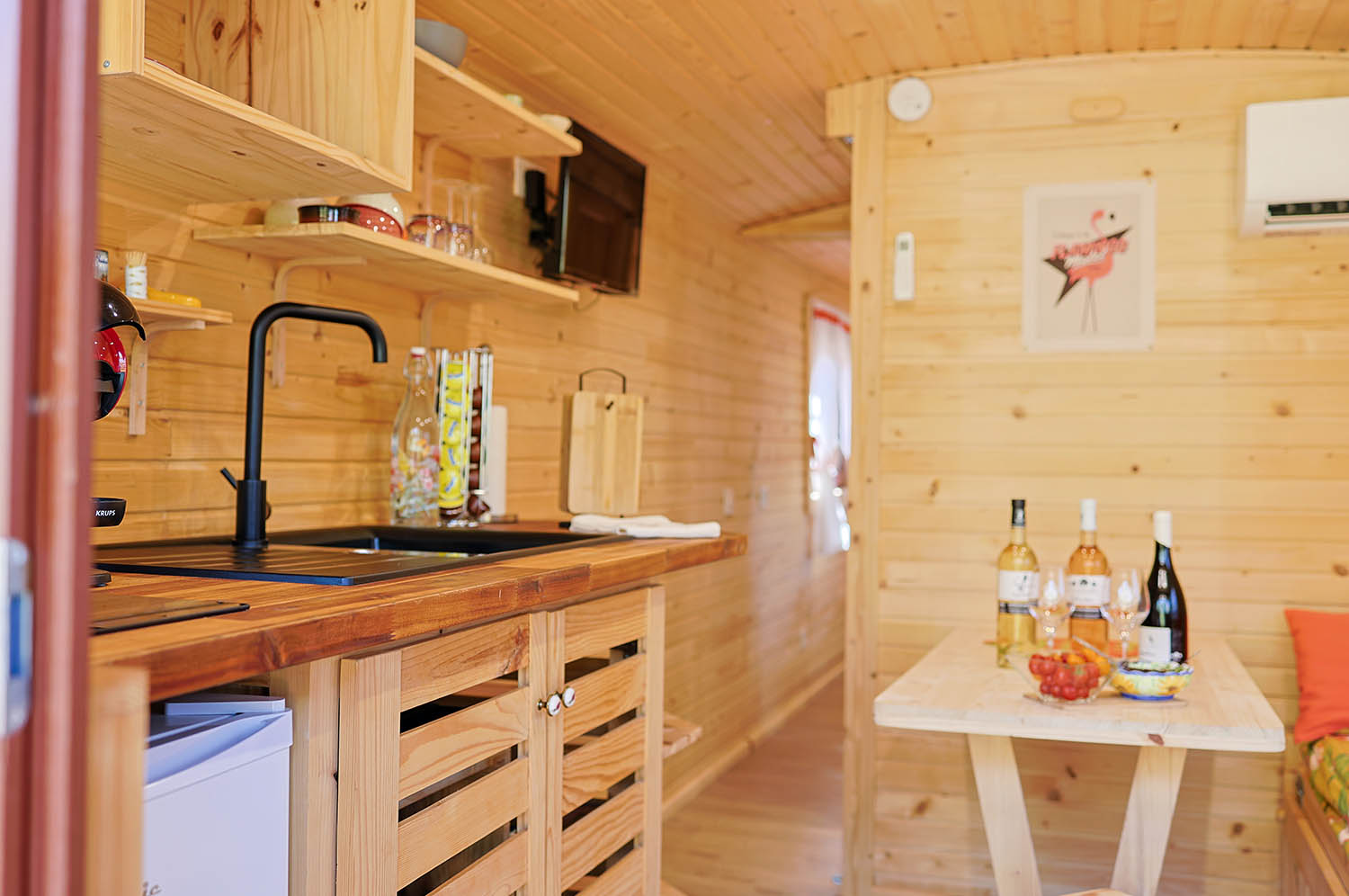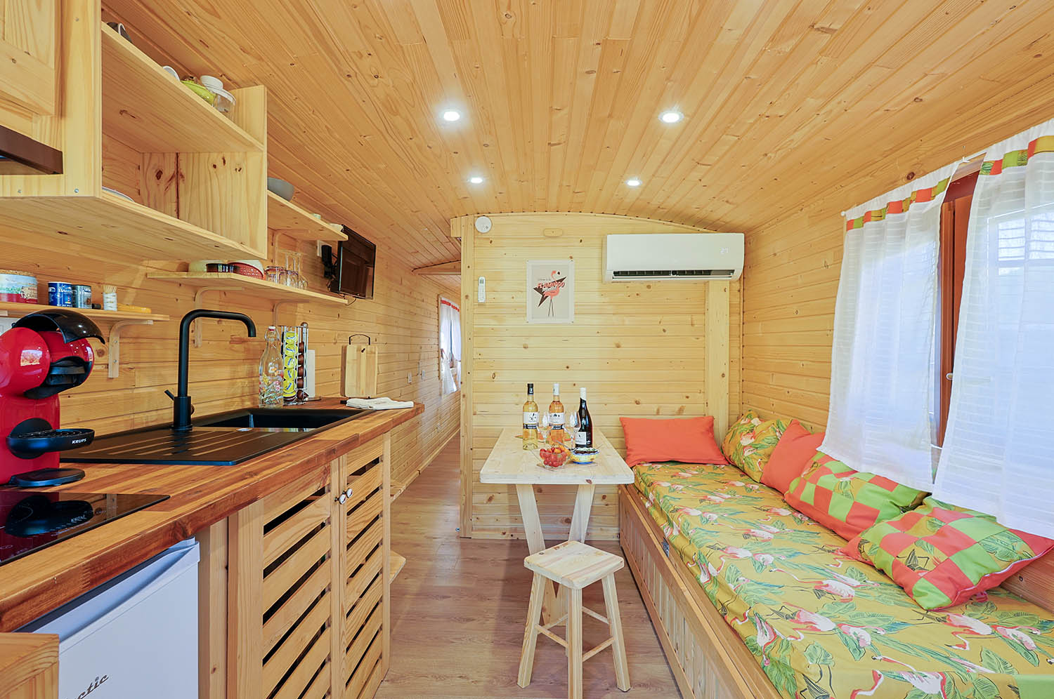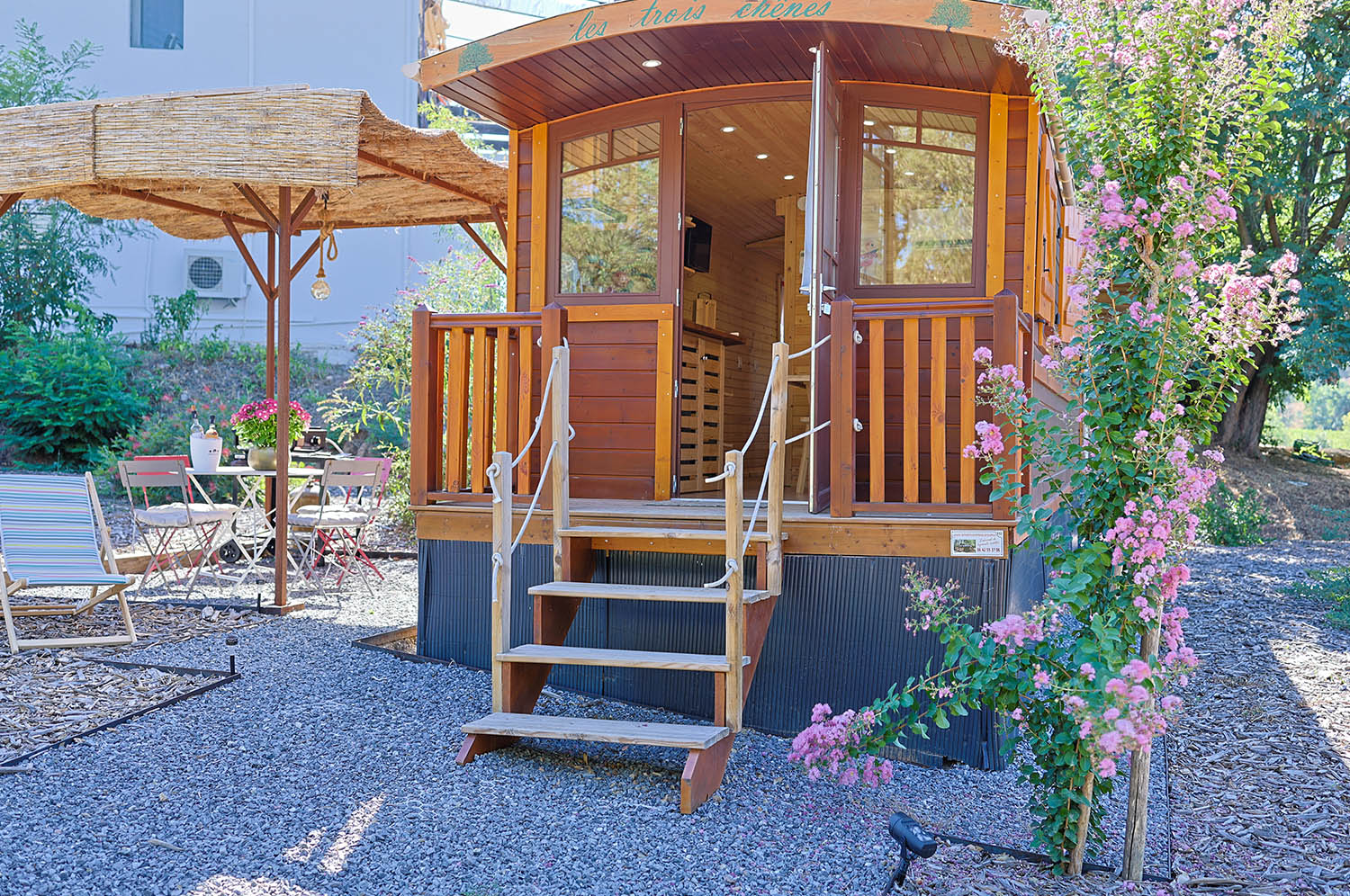 Venez vivre quelques jours dans nos Roulottes, des moments figés dans le temps, en harmonie avec la nature et au rythme du Domaine ! Vous vivrez en autonomie dans un petit cocon très confortable pour vous ressourcer et faire ce que vous voulez en toute liberté… Votre Roulotte sera équipée d’un WC et d’une salle d’eau privative, d’une clim réversible, de la wi-fi et de couchages pour 2 à 4 personnes. Grâce à sa kitchenette et son espace extérieur aménagé vous pourrez être autonomes sur les repas pendant son séjour, week-end ou vacances.